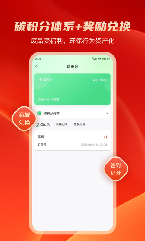 6、积分兑换:完成回收可获取积分,用于兑换福利或抵扣。