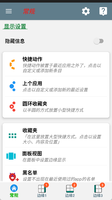 侧面板,可放置常用应用、快捷方式、快速设置和联系人,方便随时访问。