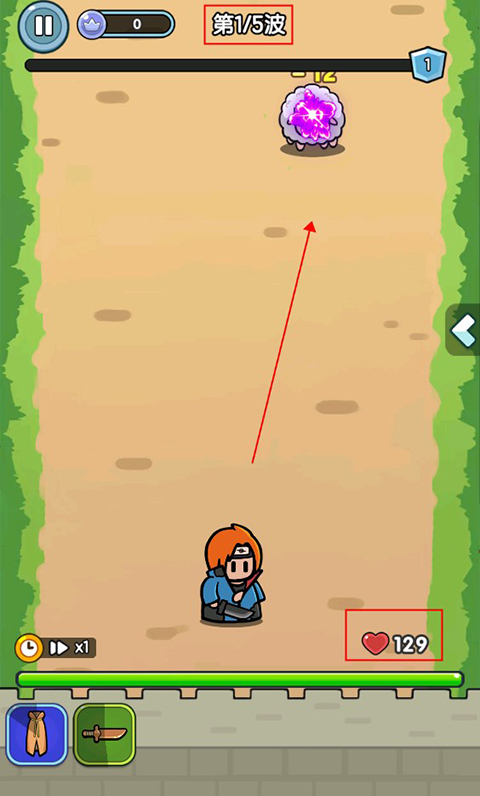 英雄塔防的形式和最强堡垒有几分接近,是竖屏的。只不过只有英雄一个人,既是炮塔又是防御目标。
