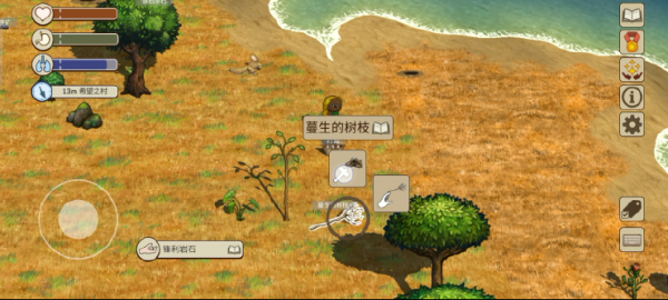 石冢和竹篮都完成后,下一步就是生火。生火的方式有多种,根据教程岛的指引本次采用的是钻木取火。在取完鸟蛋的空巢中抽取一份小树枝,作为我们起火的原料。