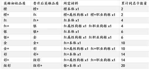 ① 英雄:首次获得的英雄,我们把它叫做英雄。晋升的目标就是给英雄升级品质。