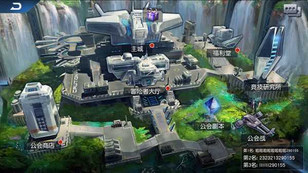 1、从主界面进入公会系统,迎面而来的是很精致的公会场景和建筑物,看来官方对公会系统还是极为重视的。公会建筑物总共有主城、福利堂、公会商店、冒险者大厅、竞技研究所、公会副本、公会战六大建筑。