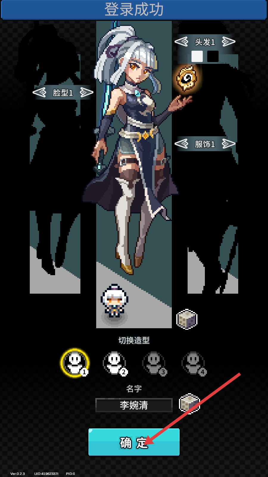 1、登录代号灵气后,在角色创建界面,玩家可调整【头发1】【脸型1】【服饰1】等造型,确认名字后点击【确定】,进入游戏。