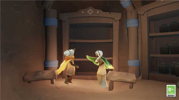 找到石碑前的人影可以打开先祖商店。在先祖商店中我们可以用蜡烛解锁姿势或祝福,用爱心购买新的装扮,还可以购买乐器与好友合奏。