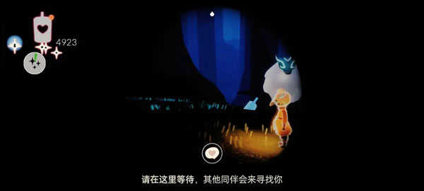 找到蓝色人影并触碰它,跟随光点,我们可以看到一个深灰色的石像,点燃石像上的火苗,它就会教我们一个新的互动姿势。