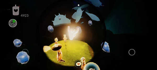 游戏世界中有很多蜡烛,点燃它们或者接近点燃的蜡烛,我们就能收集到烛光,收集满一根后点击就可以铸造一根新的蜡烛。
