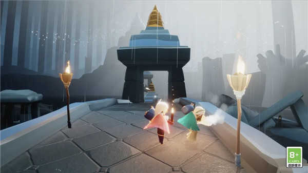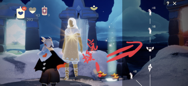 白鸟过来后,我们需要飞到它的身边点击白鸟,它会带着我们去那个宫殿门口,进入宫殿后,需要8名光之后裔一起点亮这个建筑,这一关就算能过去了,难就难在需要8名玩家才能通过,所以一个人的话是十分困难的,这时候,我们可以向周围的玩家赠送道具或者点亮他们。