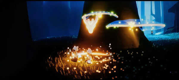 从底层大厅继续往上走,你将进入到一片漫无边际的星空中,熟悉的白鸟呈现出了半透明的形态,还有许多悬浮的巨石。在这里,你将需要乘着白鸟的力量上升,用心火点亮悬浮的棱石,通向更高的地方。