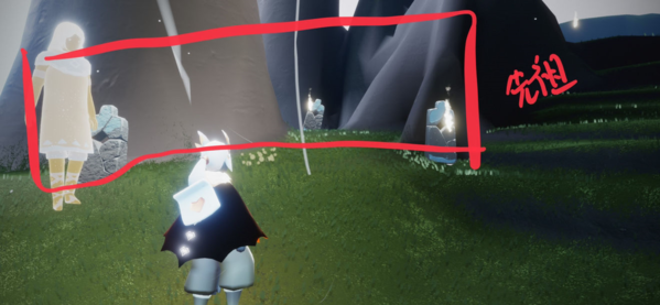 季节先祖:可以参考上图,不过季节先祖是橙色的光,每个季节会有六位季节先祖,可以向他们兑换当季的物品以及动作。