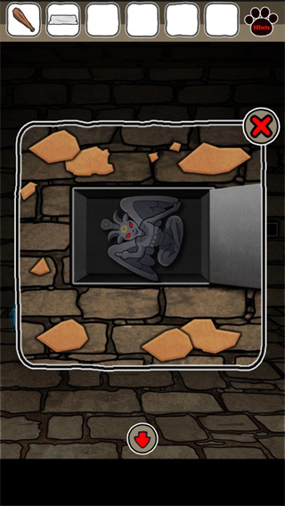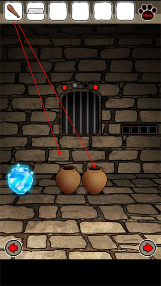 4、返回有铁栏杆的房间,用棍棒打碎放在地上的两个罐子,打开地板上的门获得恶魔雕塑;