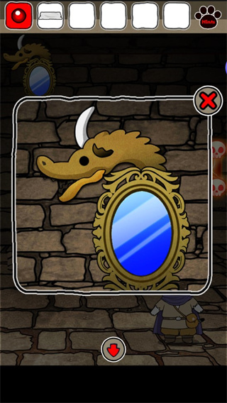 9、前往有镜子的房间,把红宝石放在镜子上的龙眼处,获取提示“擦不掉恶魔留下的污秽”;