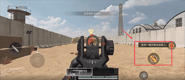 4、右手触控屏幕控制人物镜头方向,使用一键开镜开火击杀敌人;