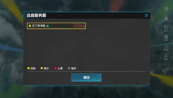 2.选择游戏服务器,游戏暂时只有拉丁美洲服,点击确定;