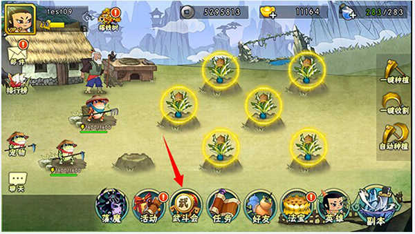 2、等到种子成长成熟之后,我们就可以收割获取相应的道具了。当然,在我们通关相应的副本之后,还会开启相当方便的一键种植和一键收割的功能呦。