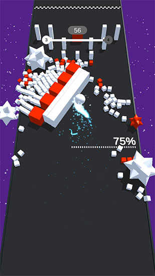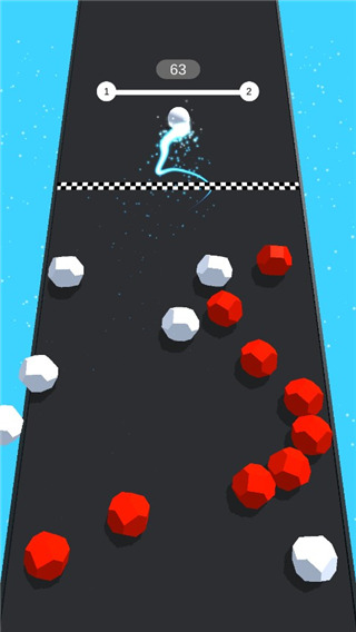 4、游戏的操作十分的简单,只需要你一根手指就能够让你的球迸发出无尽的动力,击碎挡在前方的一切物体。