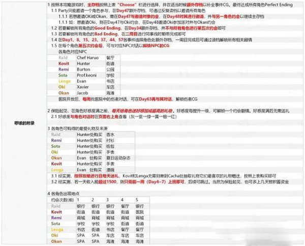 3、perfect end结局:推测好感=5事件=5,全通关后我又肝了一次64天全角色满好感的存档,其中2名角色触发5次事件应该都是PE