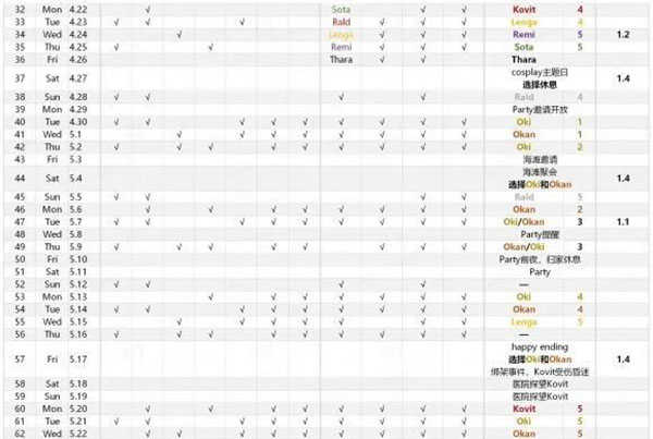 1、在程序员大佬的技术支持下,分析一波Full Service中的机制:heart level和heart event done两个判定,简单来说就是【好感】和【事件】,好感一共6个等级,分别为0,1,2,3,4,5;特殊事件一共有5次,触发会累积1次。