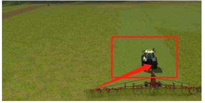 4.绿色拖拉机是芬特515c,后面有一台播种机,需要玩家自己挂接,操作非常简单,游戏里只需要倒车就可以自动连接了,这里是让玩家熟悉农机的接挂以及播种机的使用,除了部分高端播种机可以实现耕、播、施肥三合一,其他播种机只能在耕好的地上播种,像上面那块茬地,初级的播种机是无法直接作业的。