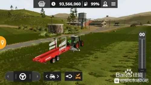 3、这是游戏初期您拥有的田地之一,田里的小麦已经成熟,是时候收割了,使用联合收割机即可收割田里的作物,右侧滑动条是油门,控制前进后退,左侧的方向盘控制左右转弯。