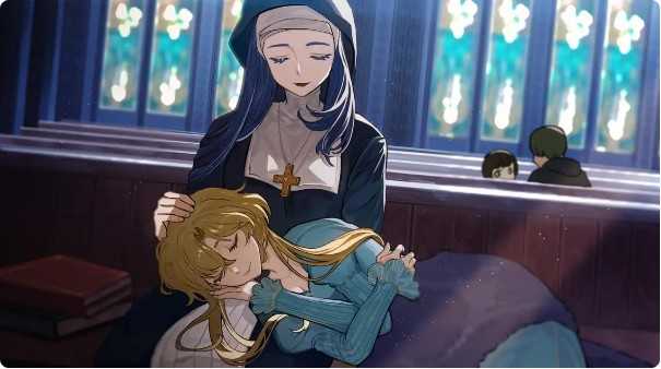 与蕾贝莎以特殊形式结婚,在与蕾贝莎讨伐鸮姬的剧情中选择“以人间的残酷法律判罚”。是被勇者阿斯贝尔成神的欲念影响的疯批姐姐,对女儿有着扭曲的感情,结局附赠了囚禁铁链play,是姐妹骨科,好哎。