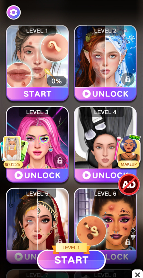 尤雅美妆改造乐园(YoYa Makeup)是一款以面部护理与造型设计为主题的休闲解压游戏,玩家将化身专业化妆师,运用多种工具为角色进行清洁护理与妆容打造。游戏包含多达29个独立清洁关卡,每一关都呈现不同的肌肤问题与护理需求,玩法轻松有趣,操作简单易上手。除了护肤和化妆,玩家还可自由搭配服饰与发型,塑造专属风格形象。丰富的模板与奖励系统提升了游戏的可玩性,非常适合用来放松心情与释放压力。