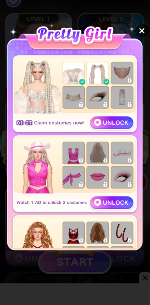 1、进入游戏界面玩家可以看见大量关卡,点击START进行挑战。