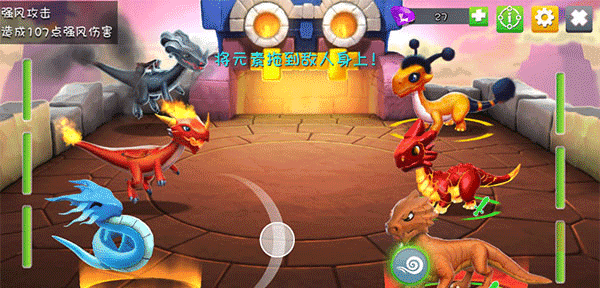 2、风这个技能可以减伤,这个游戏主要以3v3为主,推荐暴风灾难群体减伤,这个技能适合一号位的龙使用,目前面对多强攻阵容是很强力的技能,相对于土,风不仅可以多攻击一下对手而且不容易被克制,这版本虚空修正龙增加土钢属性闲的更加无力,再来看看风这属性,它的克星可就只有水了,水多用于三号位恢复,如果对手有更好的龙选择是不会把水放在一二号位的,如果在三号位等到净化后这回合已经过去了,也就是说风是目前最无解的辅助属性。