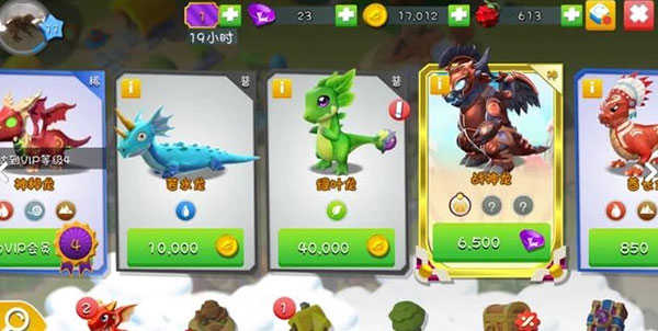 龙的买入分为金币买入和钻【氪】石【金】买入,由于本作每一个种类的龙都只需一些便可,钻石买入要的量挺大,只管充钱龙都较强,但基础仅有重氪游戏玩家才会选择。