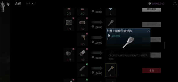 8、湖滨小屋保险箱钥匙【消耗10个电钻】。