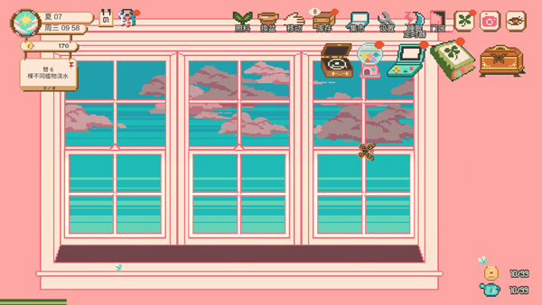 7、将植物移动至窗边,点击可打开窗户,手机阳光,水滴等