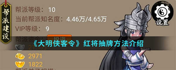 在大明侠客令红将怎么抽取呢?游戏中的红将是很多小伙伴想获得的角色,但是不知道该怎么抽有什么抽牌技巧,那么想知道红将抽牌方法的就跟随小编一起来看看吧。