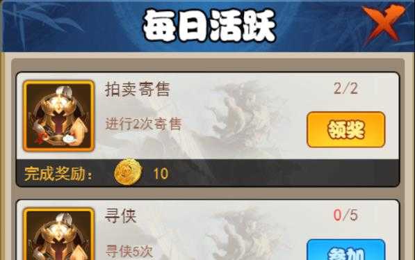 江湖资历是完成某些事件或者成就之后,可以获得一小部分金条;而每日活跃,就是把每日日常任务做了之后,达到一定的活跃度,可以获得少量金条。虽然少,但是还是老规矩,积少成多,建议各位萌新还是将每日的任务,大事件尽快做了。