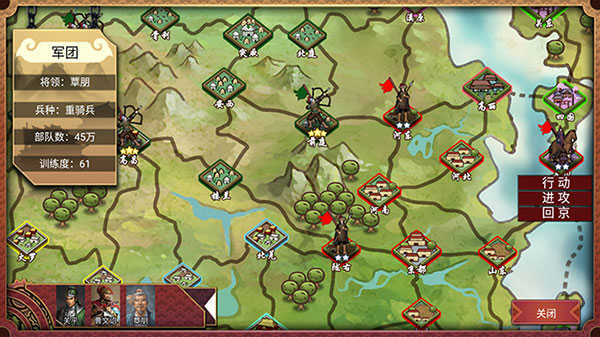2、皇帝成长计划2中,在突厥进攻时,还可以先选择兵部点击组建兵团,接着选择大将和士兵,武器和训练度可以决定兵种,其数量越多便越好。然后点击调兵谴将,最后再点击兵团移动到突厥进攻城市来进行防守即可。除此之外,还可以利用策卡邯郸舞姬来给使节送妹子以减少敌意。