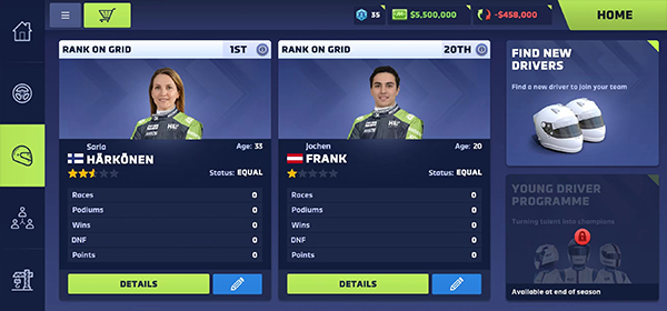 4、踏入新司机的行列,探索统计数据并建立关键关系。翻新后的总部、丰富的升级机会和新的零件开发系统,提供身临其境的体验。
