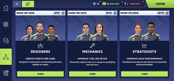 2、招募顶尖车手和团队成员,提升整体实力并优化团队合作。