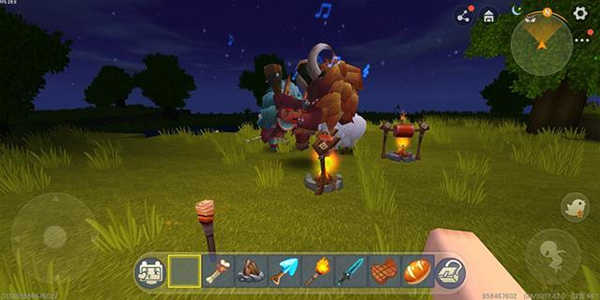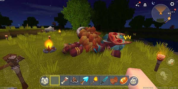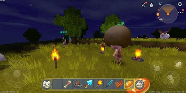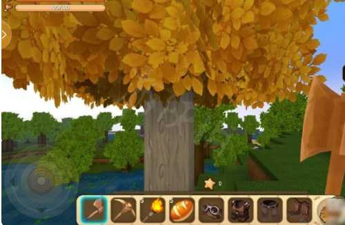 2、其次就是这一类游戏最大的主要内容:生存!在游戏的一开始你需要先收集一些基本的资源,制造一些简单的工具。要致富,先砍树。刚进入游戏,第一个要做的就是砍树,方法就是找到一棵树,将屏幕的中心对准树干长按屏幕,然后触碰掉落的木块,就会获得一些木材。再将这些木材制作成基本的工具。比如可以用来防身的木剑、可以加快砍树的木斧、可以加快挖矿的木镐等等,都可以让你在前期的资源收集中提高非常多的效率,领先其他玩家。在收集足够的材料时,你也要记得用木剑猎取一些小动物,可以获得皮毛和肉,前者以后可以做衣服,而生肉则是前期重要的食物来源。也要用多余的木材建造一个工作台,可以制作更复杂的一些道具。