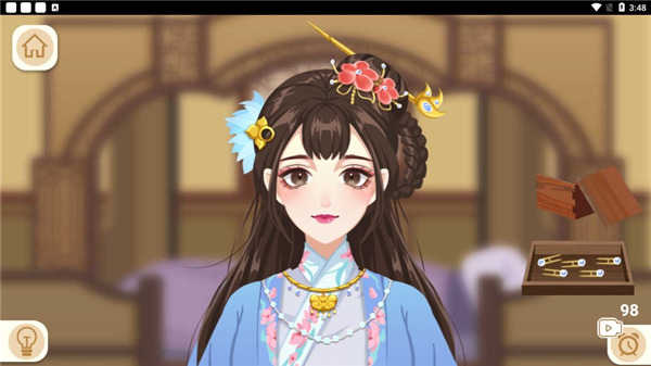 6、然后先插发簪,在贴上蓝色的花花到达指定的位置即可;