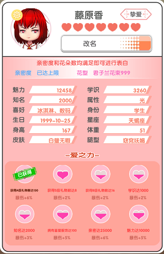 7、就是对你有企图 将等级提升至28级,亲密度提升至2500