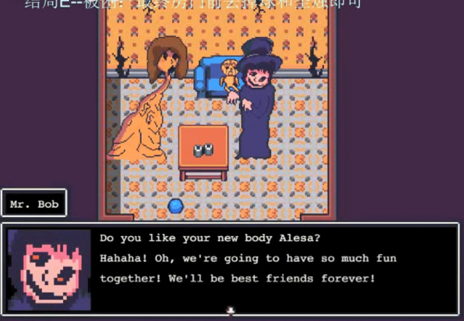 结局E:拿到枪和子弹后,枪杀这一家人,最后再前往顶楼找鲍勃的之前把圣烛和球丢掉即可