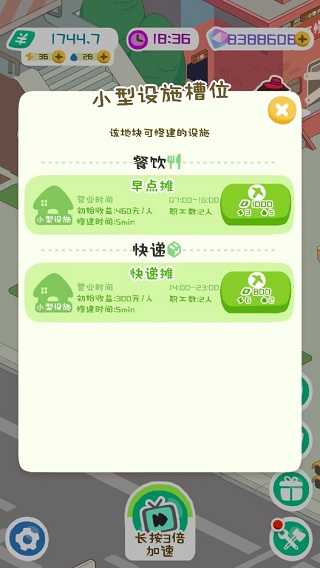 1.希望能出一个完成度统计的按钮,显示一下房间和设施的建设完成度,不然一个个点开去看很麻烦。