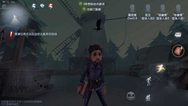 由于园丁拥有机械熟识,那么其非常适合担任破译工作。一般来说,单人破译一个密码机,会触发3次左右的矫正,且由于矫正范围非常大,几乎不会失误。就是要注意的是,矫正过程中碰到聆听和监管者接近,就立马逃跑,因为园丁一旦被抓,就很难逃脱。