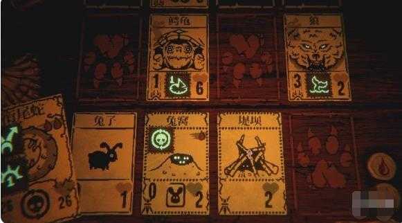 这是出卡时需要牺牲的活物数值。例如,如果你想打狼这张牌,它需要两个血滴,那么你至少要在牌桌上牺牲两个活物。同理,一血滴和三血滴的牌也是如此。