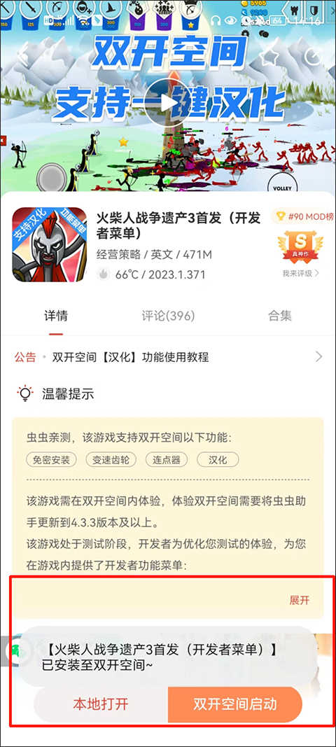 7、在进入游戏的开始,虫虫助手会给出一个重要的双开设置模式,如有需要可以直接开启。