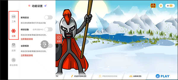 1、在本站下载并安装火柴人战争遗产3,进入游戏默认简体中文语言,点击右下角开始游戏