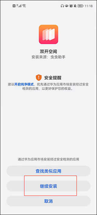 3、注意看提示,由于大家手机中并未安装双开空间,所有需要进行安装才能继续运行。