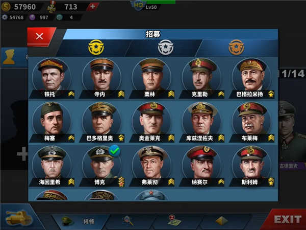 超坦、重坦、火箭炮、野战炮都得要上将领