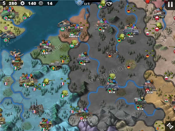 2.玩家指挥一个军团,按照战役目标攻击敌方某军团,夺取据点、造兵或攒资源、前往与下一个军团交战。