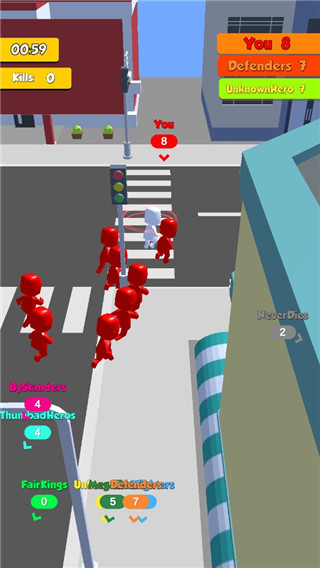 4、灵活走位躲避开危险障碍,不断吸收人群增强实力,冲刺闯关精彩不断。