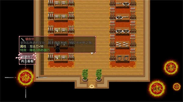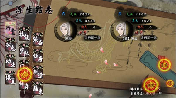 3.进入一层,打帝君(战斗,难度稍大)新人存档!!状态不好可以吃药或者出塔去客访花1灵石补满状态。可以在商楼兑换一把武器。
