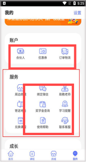 3、在我的页面中各项功能分区清晰上方账户板块有优惠券订单物流功能,方便用户管理账户相关事务下方服务区域更为丰富。